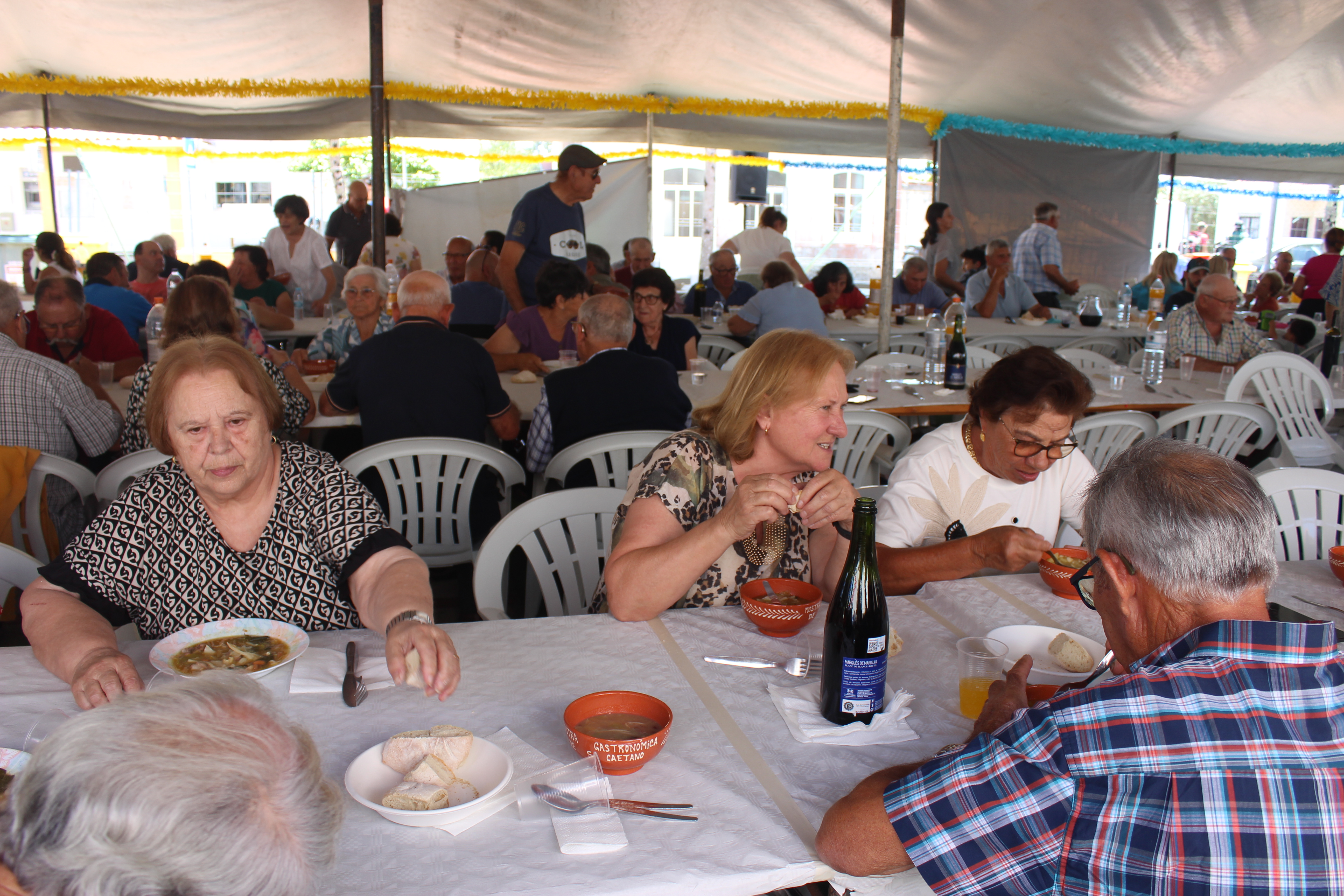 Os participantes foram deliciados pela rica e diversificada ementa apresentada por 12 cozinheiros de sopas, 3 sopas de associações/instituições – CESC, Centro Social Paroquial de S. Caetano e Escuteiros de Febres, 8 cozinheiros de feijoadas/dobradas, uma feijoada do CCR, 43 “pasteleiros/doceiros” e uma sobremesa do Grupo de Jovens de S. Caetano.